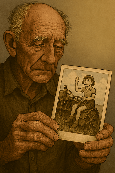 His granddaughter had brought the photograph, found in his attic. A young woman – a girl really – eighteen years old, sitting on a harvester in a field, beaming, waving her arm at the camera, wearing shorts and a flowing blouse.