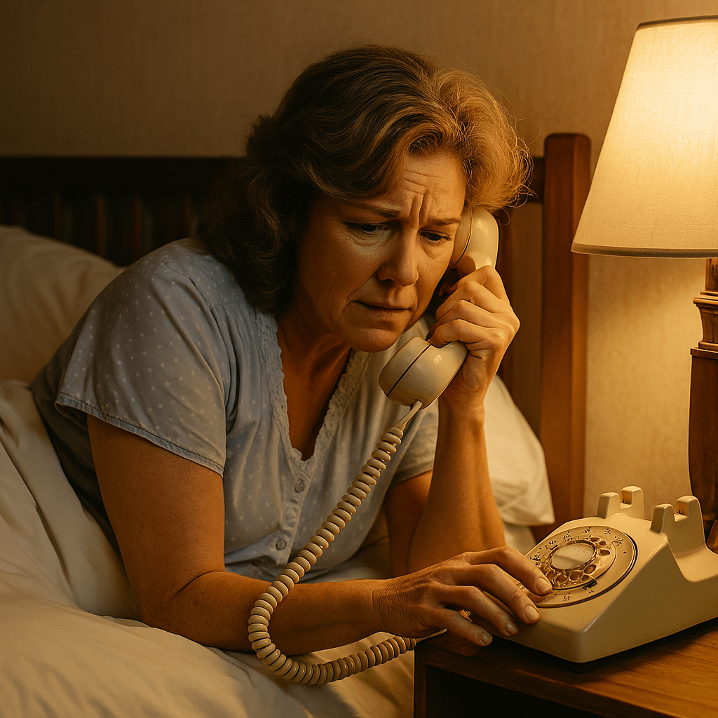Sheila slept soundly, until the phone rang one night and the caller asked, ‘What colour knickers are you wearing?’