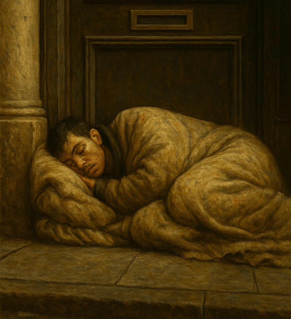 All through the winter he was there. Every morning as I entered my office, I looked out of the window to check. The boy was in a doorway, wrapped in a filthy duvet trying to sleep.