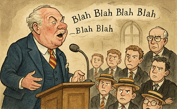 Esteemed headmaster, masters, parents and bright-eyed scholars, today I stand before you with the spirit of a lion and the wisdom of an old oak. You all know of my heroic exploits in the War Office so I shall not blow my own trumpet.