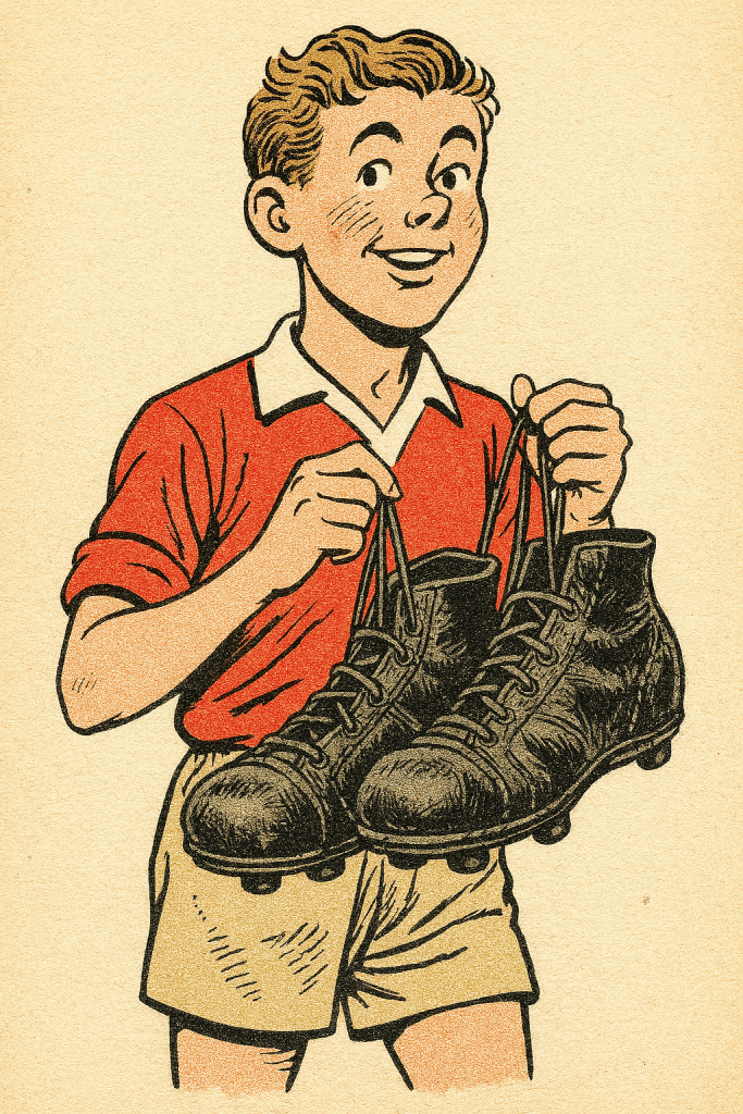 Billy kept the boots for a laugh and later at the Rec. he put them on to amuse his pals. For once he wasn’t in goal – a kid called Becks played even worse than Billy – and they let Billy have a kick of the ball.