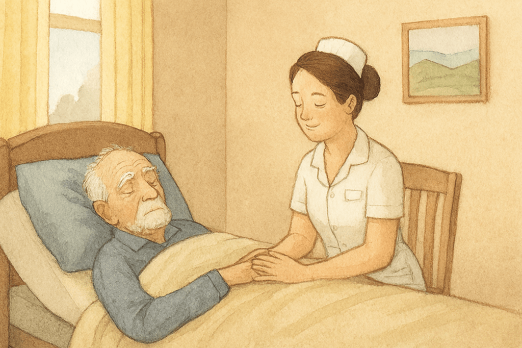 Nurse Marie wheeled a screen around his body and went to telephone the priest.